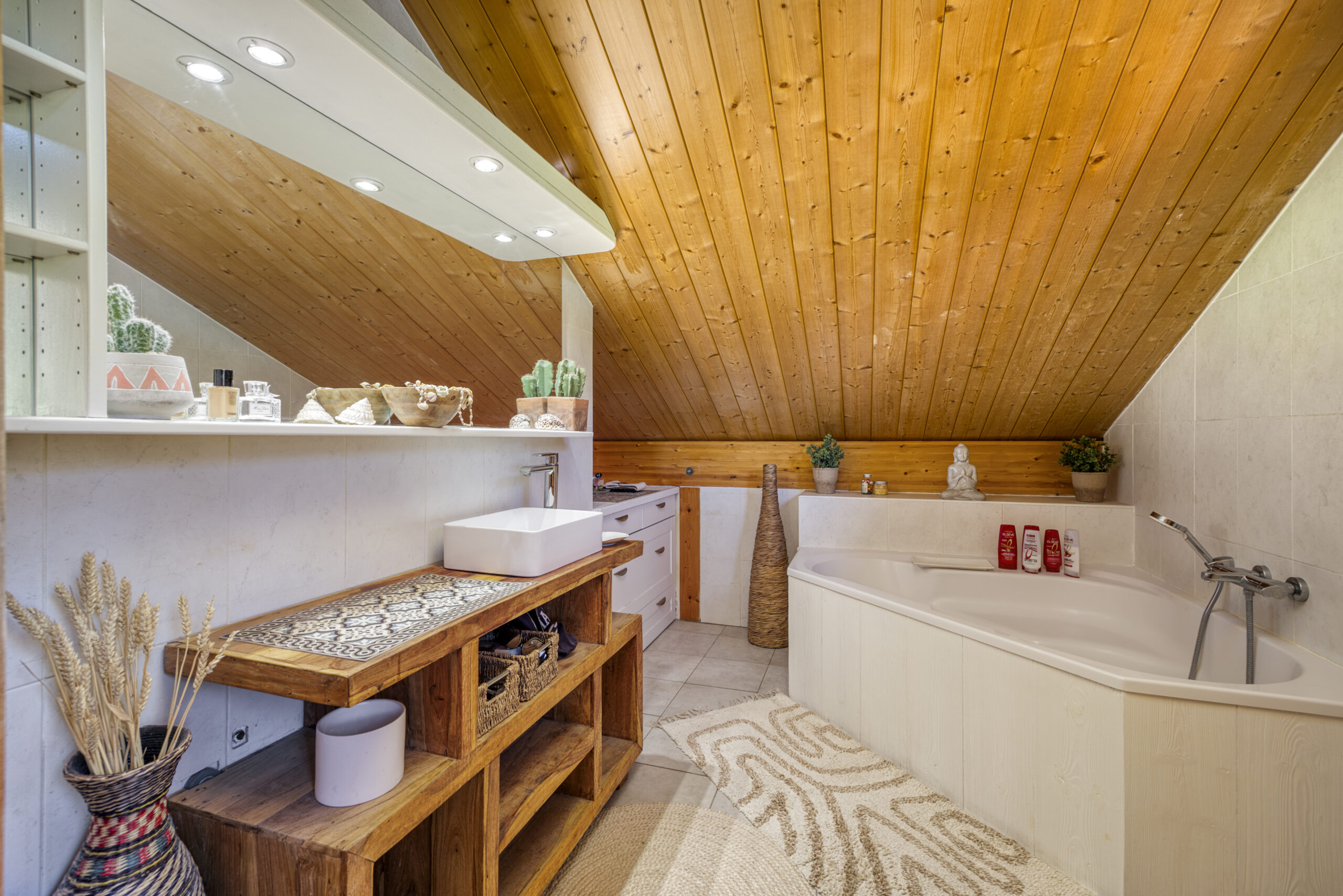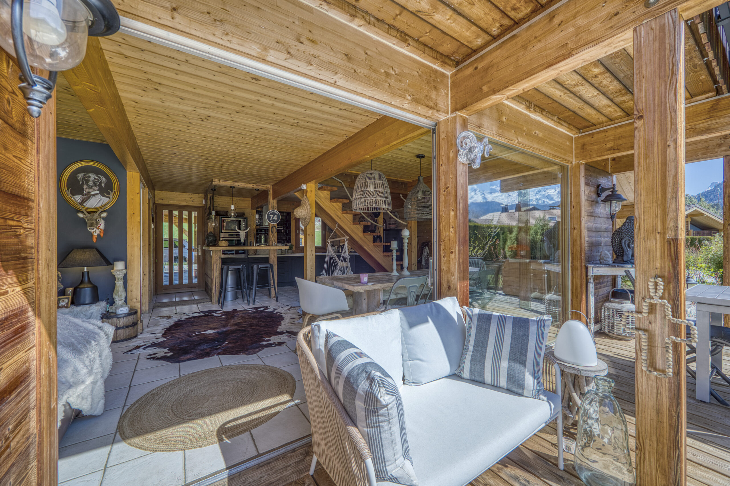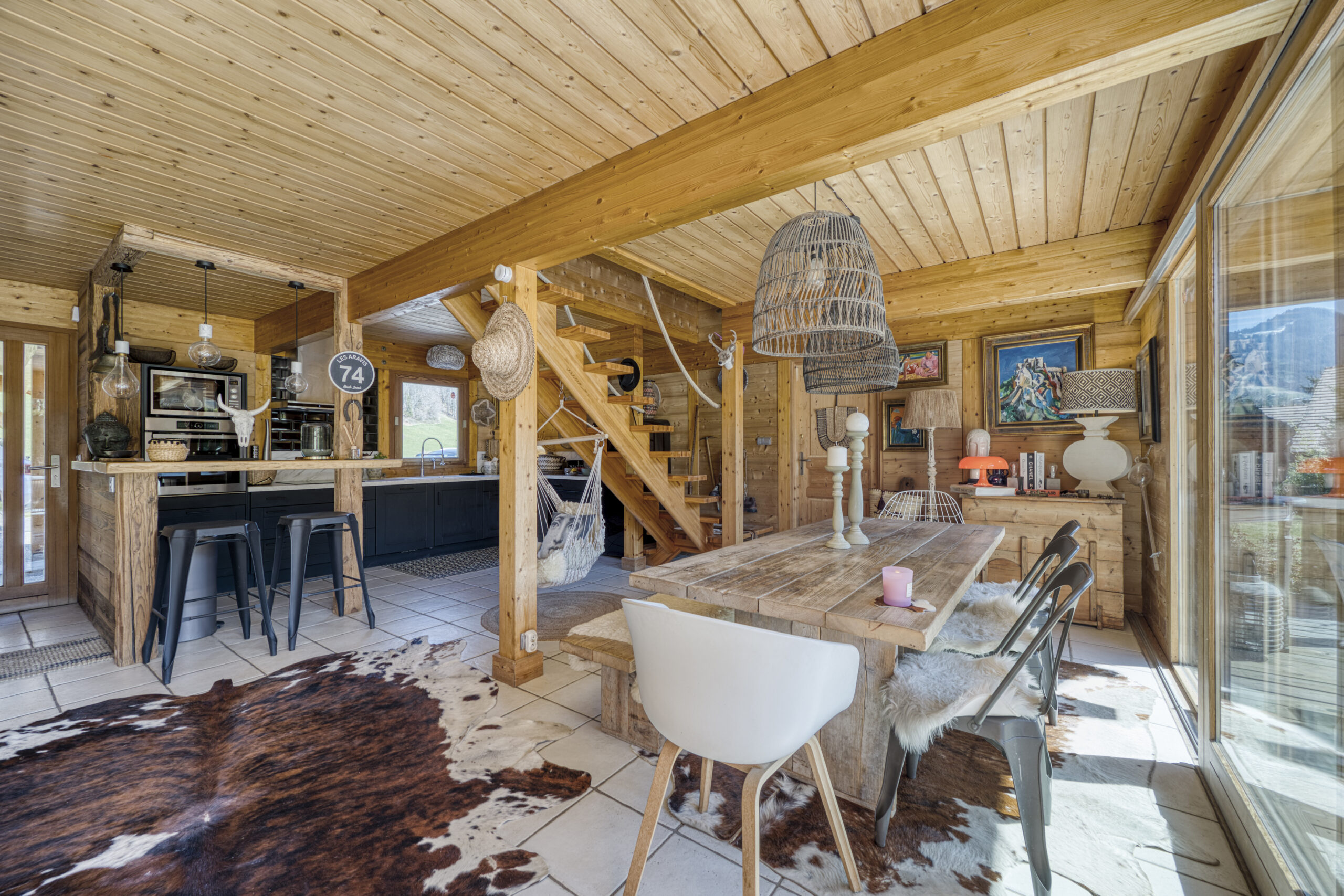 Dès l’entrée, vous serez conquis par l’ambiance chaleureuse et les volumes lumineux de la pièce de vie.